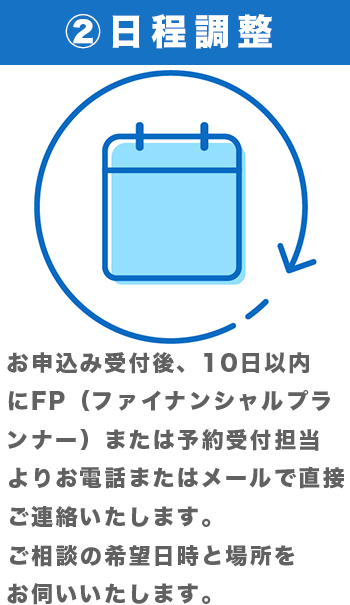 ※12月25日(木)から翌1月4日(日)までのお申し込みは、1月5日(月)から順次FPの手配を行い、ご相談日時の調整をさせていただきます。